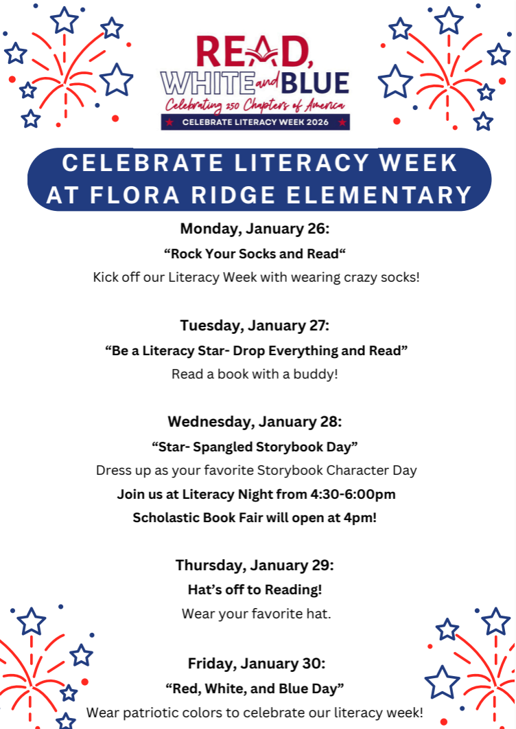 - Wednesday, Jan 28: Star-Spangled Storybook Day! Dress as your favorite storybook character and join us for Literacy Night from 4:30–6:00 PM! (Scholastic Book Fair opens at 4 PM!)